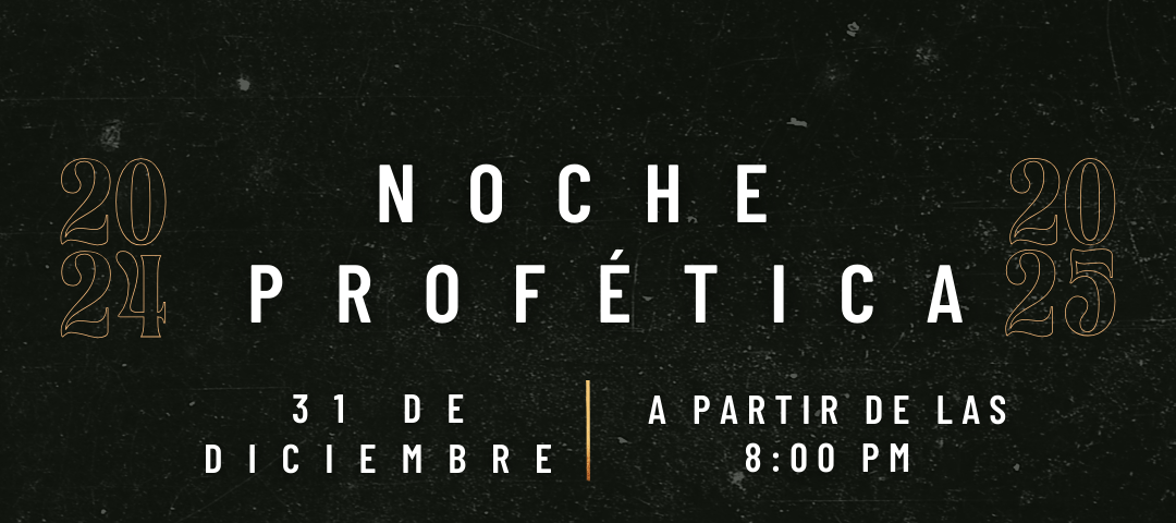 El 31 de diciembre marca el cierre de un ciclo y el comienzo de un nuevo capítulo lleno de oportunidades, bendiciones y promesas. Queremos que entre al 2025 con una visión clara, con la fe renovada y con el corazón lleno de esperanza. Por eso, te invitamos a ser parte de nuestra Noche Profética..